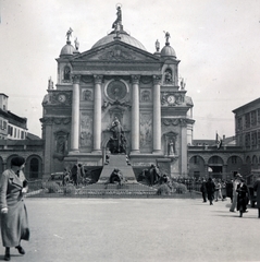 Piazza Maria Ausiliatrice, Segítő Szűz Mária-bazilika (Basilica santuario di Maria Ausiliatrice), előtte Bosco Szent János (Giovanni Bosco / Don Bosco) emlékműve.