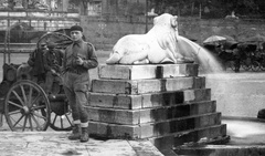 Piazza del Popolo, az obeliszk körül álló oroszlános kutak egyike.