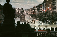 Vencel tér (Václavské námestí), a Nemzeti Múzeum felől nézve, középen a Szent Vencel szobor.