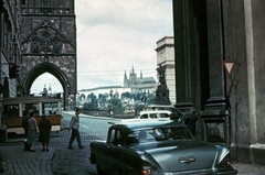Karlova ulice az Óvárosi hídtorony felé nézve, jobbra a távolban a Hradzsin.