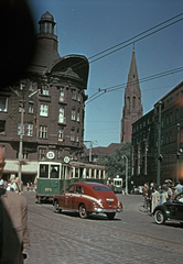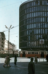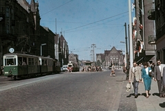 az ulica Wspólna és az ulica Krucza keresztezödésében egy Škoda 8Tr trolibusz. A felvétel a Grand Hotel Orbis-ból készült.