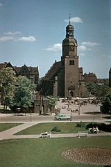 Kamienna Góra városrész, kilátás az azonos nevű morénadombról a Plac Grunwaldzki felé, középen a Szűz Mária Lengyelország királynője-templom.