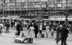 Augustusstasse a Schlossplatz és a Hofkirche felé nézve, balra a Fürstenzug című, meisseni porcelánra festett falikép.
