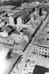 kilátás a Fogadalmi-templom tornyából az Oskola utca irányába.