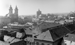 kilátás az avasi Rákóczi kilátóból, a kép bal szélén a két tornyú Minorita templom.