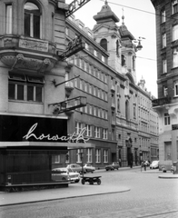 a Mariahilfer Strasse a Rahlgasse torkolata felé nézve.