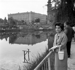 Feneketlen-tó, háttérben a Villányi út, a Szent Imre-templom és a József Attila (később Budai Ciszterci Szent Imre) Gimnázium.