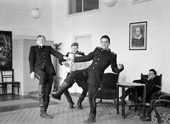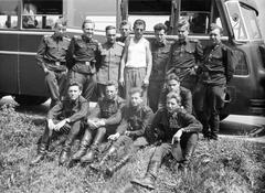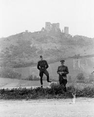 (Győrszentmárton), a felvétel a Pannonhalmi Bencés Főapátság főkapuja előtt készült. Háttérben Boldogfalvi Farkas Sándor szobrászművész feszülete látható.