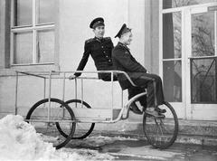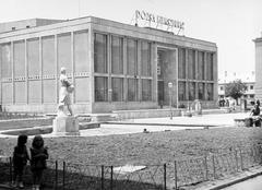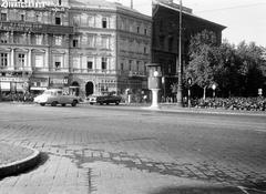 Fővám (Dimitrov) tér, háttérben a Marx Károly Közgazdaságtudományi Egyetem (később Corvinus Egyetem) épülete.