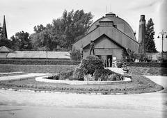 háttérben az egykori Iparcsarnok helyén kialakított kiállítási pavilon, a Petőfi Csarnok.