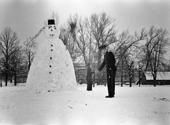 (Sztálinváros), Dózsa György (Ságvári) tér, Dózsa mozi, a Korsós lány szobra Wagner Nándor alkotása (1955).