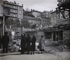 Logodi utcai támfal építése a hegyoldal megcsúszása után, balra az Attila út 133. (ekkor 95-99.), jobbra a Logodi utca 72. számú ház.