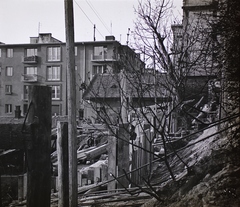 Attila út 127. (ekkor Attila utca 89.) és a mellette lévő udvar. A felvétel hegyoldal megcsúszása után a Logodi utcai támfal építésekor készült.