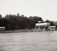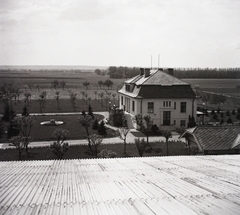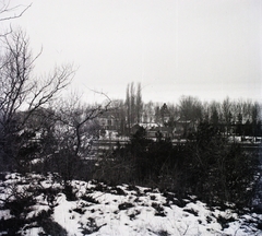 (ekkor Tököl külterülete), a Korbuly birtok a Duna felől. Háttérben a 314 méter magas lakihegyi antennatorony, mely 1933-as átadása óta Magyarország legmagasabb építménye.