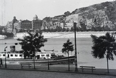 pesti alsó rakpart, a Duna túlpartján a Gellért Szálló és a Gellért-hegy.