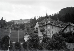 előtérben a Hotel Stefanie tornyos épülete, a háttérben fenn a Grandhotel Panhans a vasútállomástól nézve.