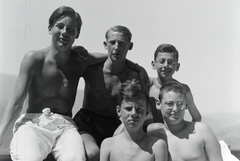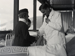a szanatóriumban ápolt fiúk és orvosuk a teraszon.