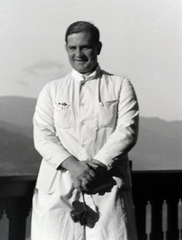 a szanatóriumban dolgozó orvos a teraszon.