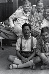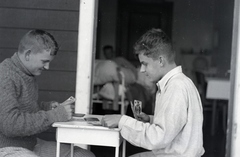 a szanatóriumban ápolt fiatalok kártyáznak a teraszon.