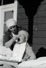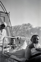 a szanatóriumban ápolt fiú ápolónőjével a teraszon.