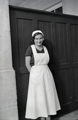 a szanatóriumban dolgozó ápolónő a teraszon.