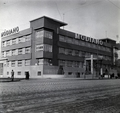 Váci út 48/e-f, balra a Röntgen utca (Visegrádi köz), a Modiano S. D. Szivarkapapír Rt. gyárépülete.