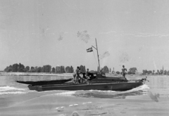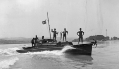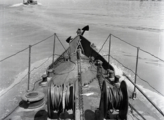 A Magyar Királyi Honvéd Folyamőrség AM-5 típusú aknász motorhajója a Dunán. A felvétel a Sopron őrnaszád fedélzetéről készült.
