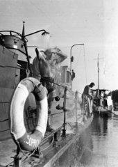 tisztálkodó matróz a Magyar Királyi Honvéd Folyamőrség hajóján, a Sopron őrnaszád fedélzetén.