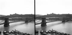 kilátás a budai Várból a Széchenyi Lánchíd és a Bazilika felé. A felvétel 1895-ben készült.
