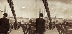 a Széchenyi Lánchíd a M. kir. Kereskedelemügyi Minisztérium épületéből fényképezve, háttérben balra a Magyar Tudományos Akadémia épülete a Széchenyi István (Ferenc József) téren. A felvétel 1900 előtt készült. A kép forrását kérjük így adja meg: Fortepan / MMKM. Levéltári jelzet: MMKM TTFGY 2019.1.
