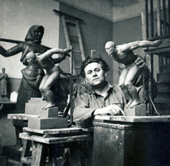 Batthyány utca, Kocsis András szobrászművész műterme a Magvető asszony és a Pásztorlány című szobrok alkotásakor.