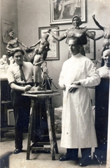 Batthyány utca, Kocsis András szobrászművész műtermében, balra a háttérben a Pásztorlány című szobra.