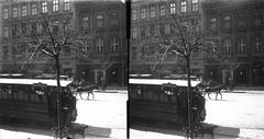 Trefort-kert, szemben a Budapesti Tudományegyetem Fizikai Intézete (később az ELTE / Eötvös Loránd Tudományegyetem Bölcsészettudományi Kar D épülete).