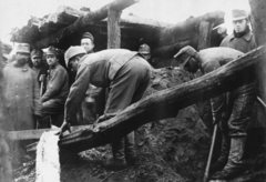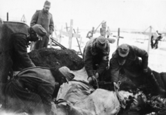 a 23. gyalogezred hadtápos katonái csépelnek.