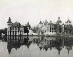 Városligeti-tó és a millenniumi kiállításra épített történelmi főcsoport épületei, balra a Vajdahunyad vára. A felvétel 1896-ban készült. A kép forrását kérjük így adja meg: Fortepan / Budapest Főváros Levéltára. Levéltári jelzet: HU.BFL.XV.19.d.1.01.015