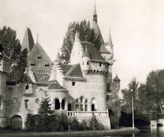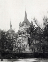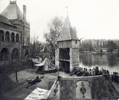 Vajdahunyad vára. A millenniumi kiállításra épített történelmi főcsoport, reneszánsz-barokk épületegyüttesének korai francia reneszánsz palotatornya, a Francia-torony. A felvétel 1896-ban készült. A kép forrását kérjük így adja meg: Fortepan / Budapest Főváros Levéltára. Levéltári jelzet: HU.BFL.XV.19.d.1.01.022