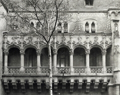 Millenniumi kiállítás: Vajdahunyad vára, a történelmi főcsoport gótikus épületeggyütese, Hunyadi-loggia. A felvétel 1896-ban készült. A kép forrását kérjük így adja meg: Fortepan / Budapest Főváros Levéltára. Levéltári jelzet: HU.BFL.XV.19.d.1.01.008