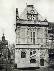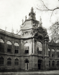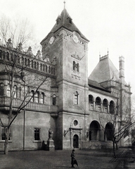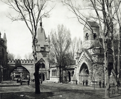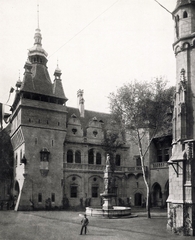 Vajdahunyad vára. A millenniumi kiállításra épített történelmi főcsoport, reneszánsz épület főbejárata, I. Ferenc korabeli francia palotatorony. 1897-től Magyar Mezőgazdasági Múzeum. A felvétel 1896-ban készült. A kép forrását kérjük így adja meg: Fortepan / Budapest Főváros Levéltára. Levéltári jelzet: HU.BFL.XV.19.d.1.01.028