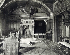 Millenniumi kiállítás: Vajdahunyad vára, királyi lakosztály dolgozószobája a történelmi főcsoport román stilusú épületében. A felvétel 1896-ban készült. A kép forrását kérjük így adja meg: Fortepan / Budapest Főváros Levéltára. Levéltári jelzet: HU.BFL.XV.19.d.1.01.010