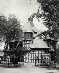 Millenniumi kiállítás: az Alpár Ignác és Herman Ottó tervezte Ősfoglalkozások pavilonja. A felvétel 1896-ban készült. A kép forrását kérjük így adja meg: Fortepan / Budapest Főváros Levéltára. Levéltári jelzet: HU.BFL.XV.19.d.1.01.012