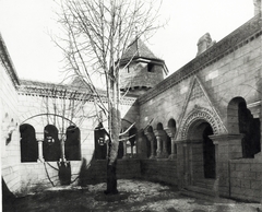 a millenniumi kiállításra épített történelmi főcsoport román kori épületegyüttese a kerengővel. A felvétel 1896-ban készült. A kép forrását kérjük így adja meg: Fortepan / Budapest Főváros Levéltára. Levéltári jelzet: HU.BFL.XV.19.d.1.01.024