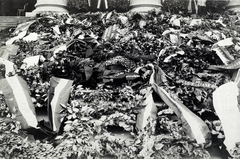 a Magyar Nemzeti Múzeum lépcsője, a megemlékezés koszorúi Kossuth Lajos felravatalozásakor. A felvétel 1894. március 30-án készült. A kép forrását kérjük így adja meg: Fortepan / Budapest Főváros Levéltára. Levéltári jelzet: HU.BFL.XV.19.d.1.04.003
