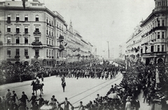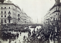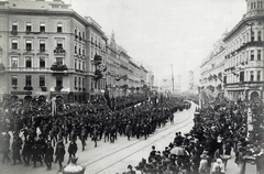 Erzsébet körút, Kossuth Lajos temetési menete a Dohány utcánál. A felvétel 1894. április 1-én készült. A kép forrását kérjük így adja meg: Fortepan / Budapest Főváros Levéltára. Levéltári jelzet: HU.BFL.XV.19.d.1.04.006