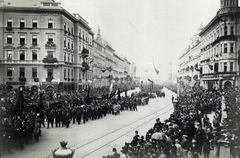 Erzsébet körút, Kossuth Lajos temetési menete a Dohány utcánál. A felvétel 1894. április 1-én készült. A kép forrását kérjük így adja meg: Fortepan / Budapest Főváros Levéltára. Levéltári jelzet: HU.BFL.XV.19.d.1.04.010