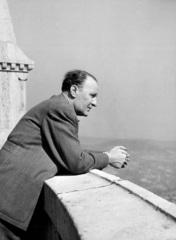 portré Kádár Jánosról a Magyar Szocialista Munkáspárt vezetőjéről a tengerparton.
