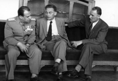 Farkas Mihály honvédelmi miniszter, Révai József népművelési miniszter és Kádár János belügyminiszter az Országház folyosóján.