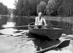 portré Kádár Jánosról a Magyar Szocialista Munkáspárt vezetőjéről evezés közben.
