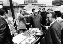 Váci út - Róbert Károly körút sarok, Dalmy Tibor kormánybiztos (világos zakóban) tájékoztatja Kádár Jánost a Magyar Szocialista Munkáspárt vezetőjét az Árpád hídi közlekedési rendszer építéséről. Közöttük Bornemissza Sándor kerületi tanácselnök, balra Maróthy László. Kádár Jánostól jobbra kigombolt zakóban Iványi Pál későbbi budapesti tanácselnök.