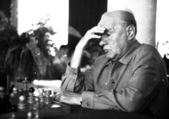 portré Kádár Jánosról a Magyar Szocialista Munkáspárt vezetőjéről sakkozás közben.