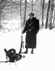 portré Kádár Jánosról a Magyar Szocialista Munkáspárt vezetőjéről vadászaton egy muflon kossal.